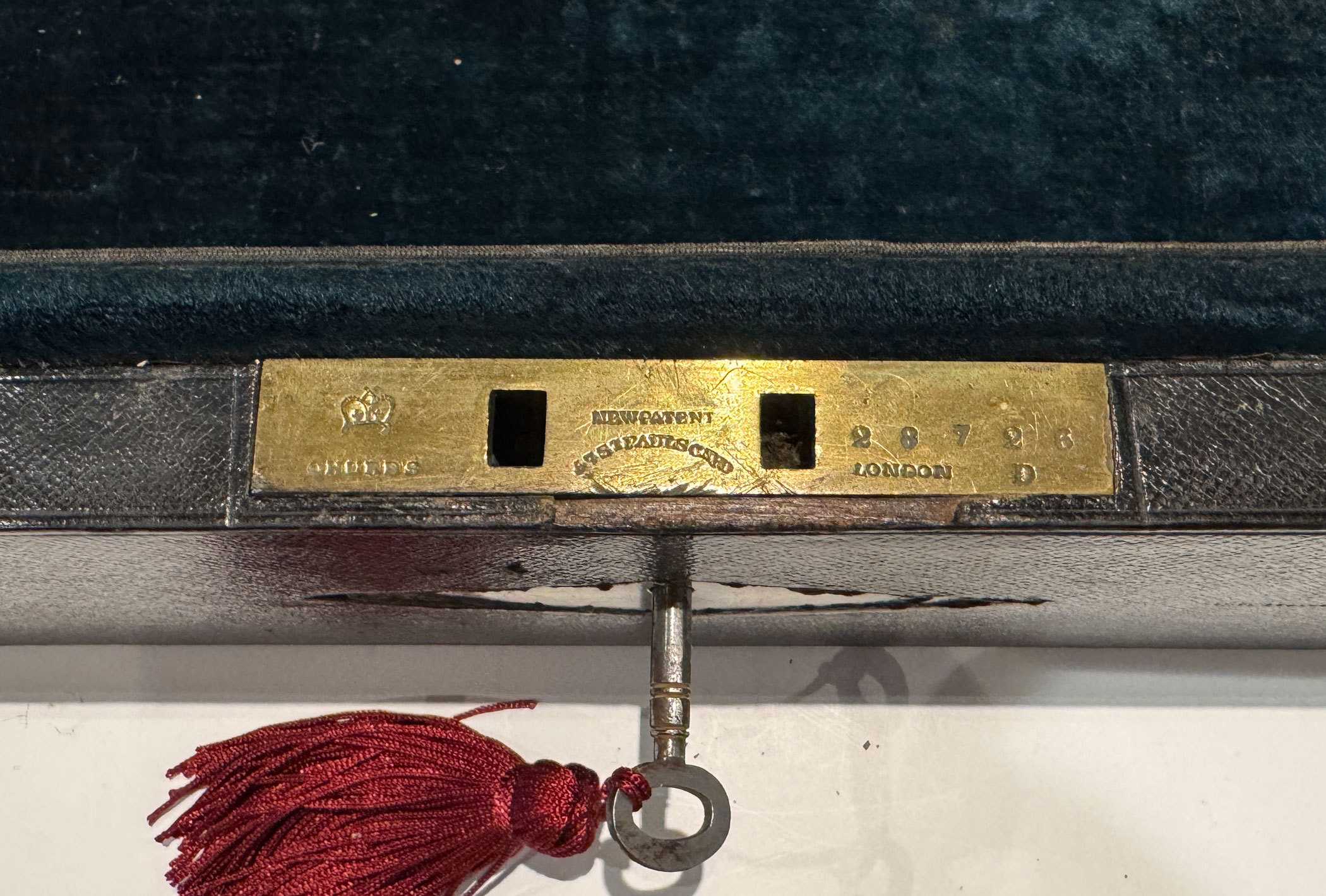 The interior has its original green lining with raised sides. The extra secure Chubb Detector lock numbered 28726 retains its original key.