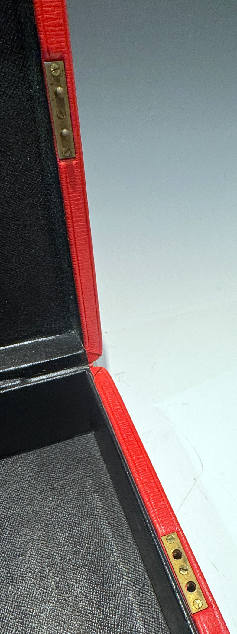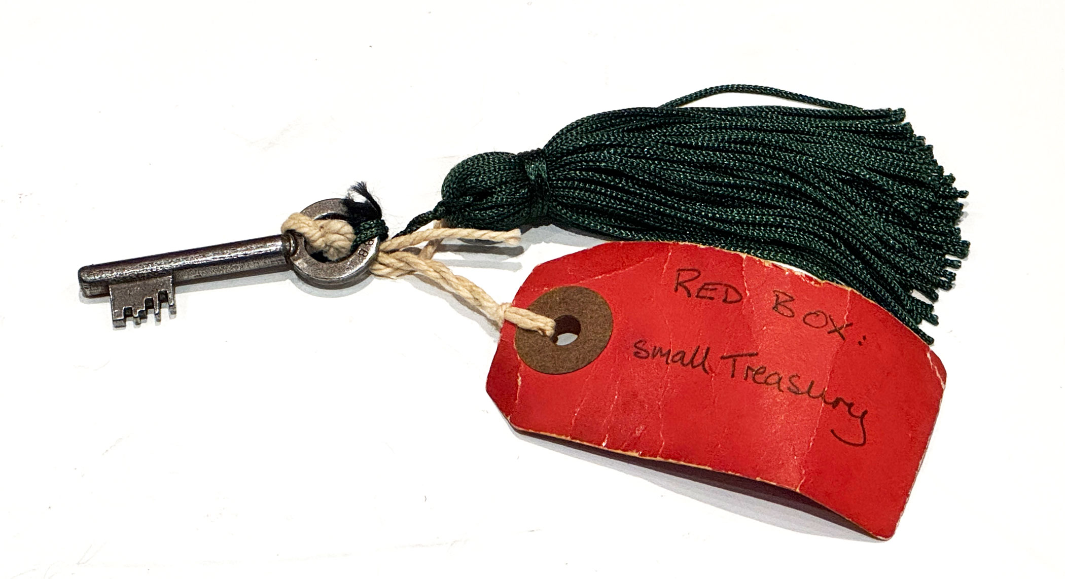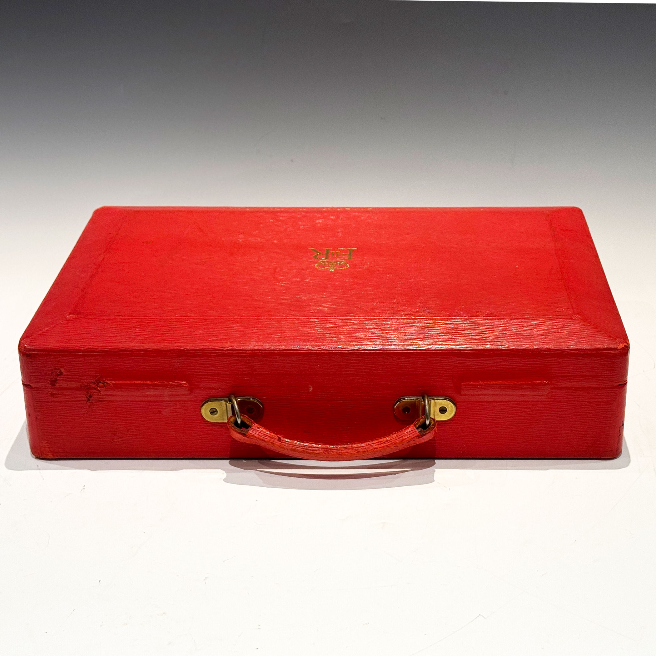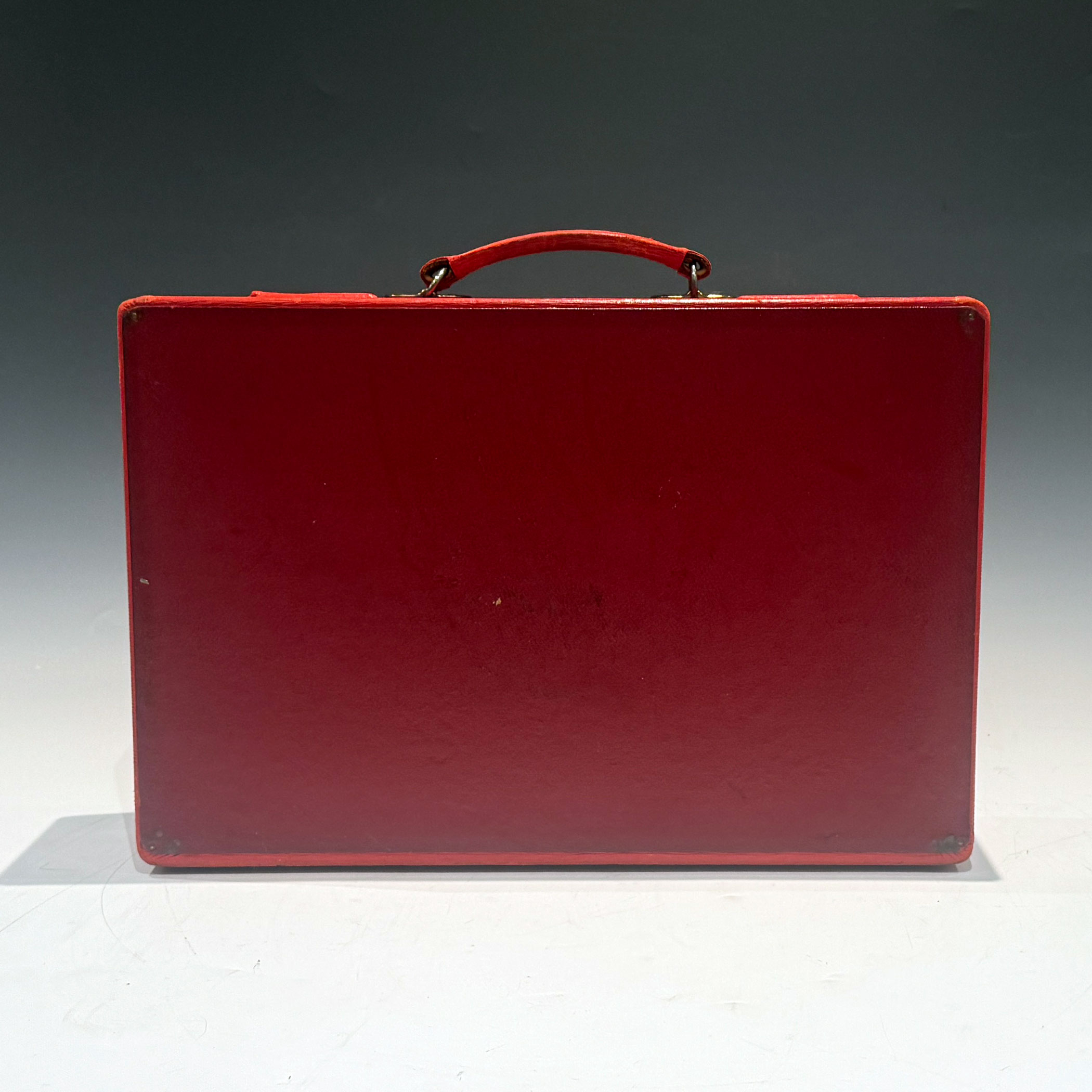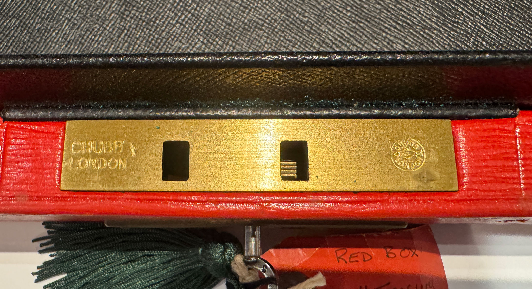 A Red QEII Leather Despatch Box, the bevelled top embossed with the royal cypher of Queen Elizabeth II and inscribed ‘Parliamentary Secretary to to the Treasury’ *The briefcase type leather handle is at the rear of the box for comfortable travelling. The 5 lever Chubb lock & key are stamped Chubb and have 5 levers.